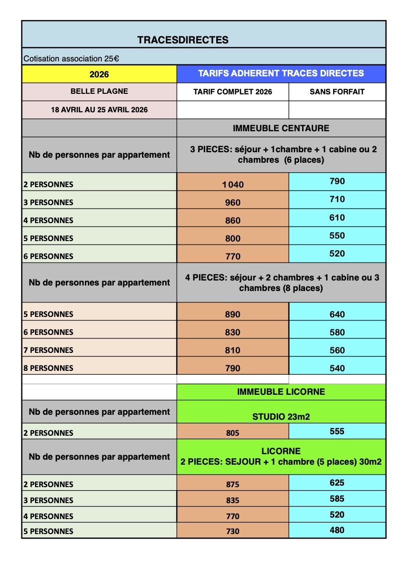La cotisation à l'association est obligatoire, elle couvre les frais de fonctionnement pour l'organisation de ce séjour ainsi que l'assurance individuelle pour la pratique du ski (pendant cette semaine uniquement).